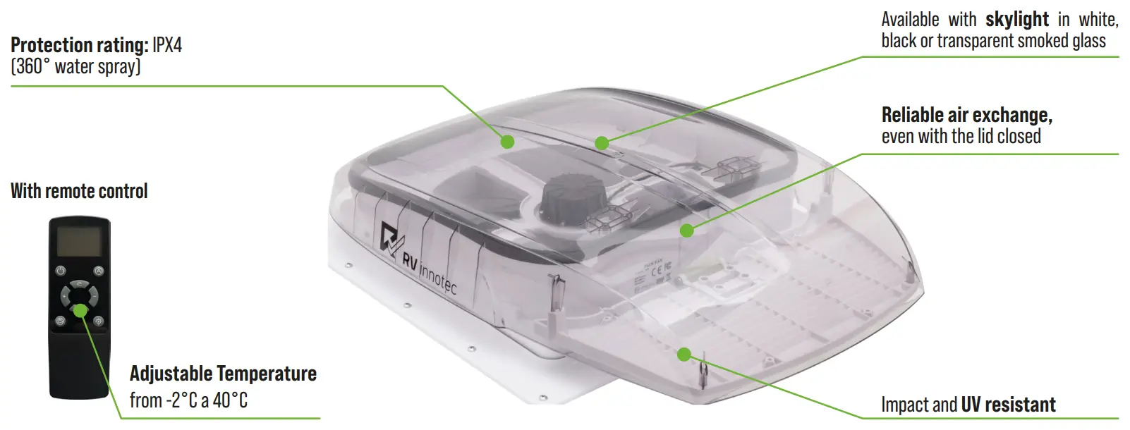 RVinnotec Plus Fan Motorised 12V DC Skylight Features