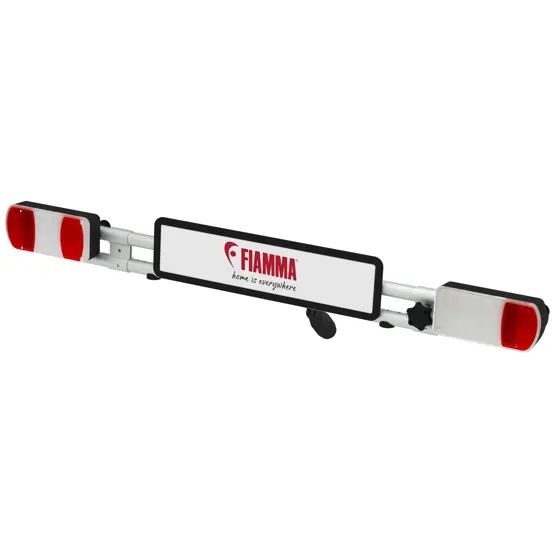 The Fiamma Licence Plate Carrier comes with a 13-pin socket, allowing for a quick and seamless connection to your vehicle's electric system. This makes it easy to integrate into your setup without requiring complex modifications. It attaches securely to the Carry-Bike’s rail support using the standard brackets included with the product. This design ensures stability during use while offering a hassle-free installation process. The carrier’s adjustable bar can turn 90°, allowing you to reposition it for optimal visibility when the rail support is folded or extended, adding to its convenience.