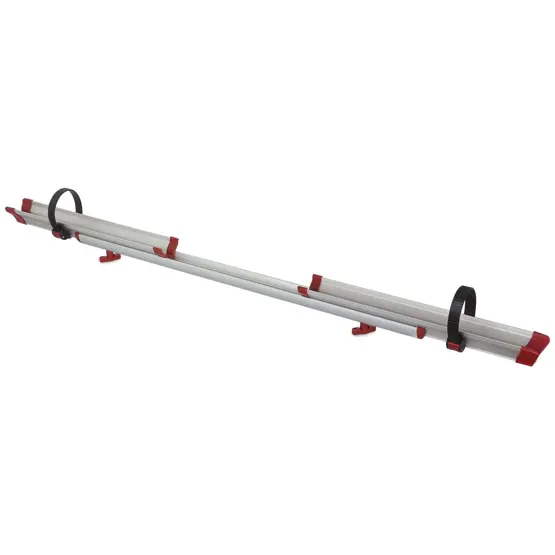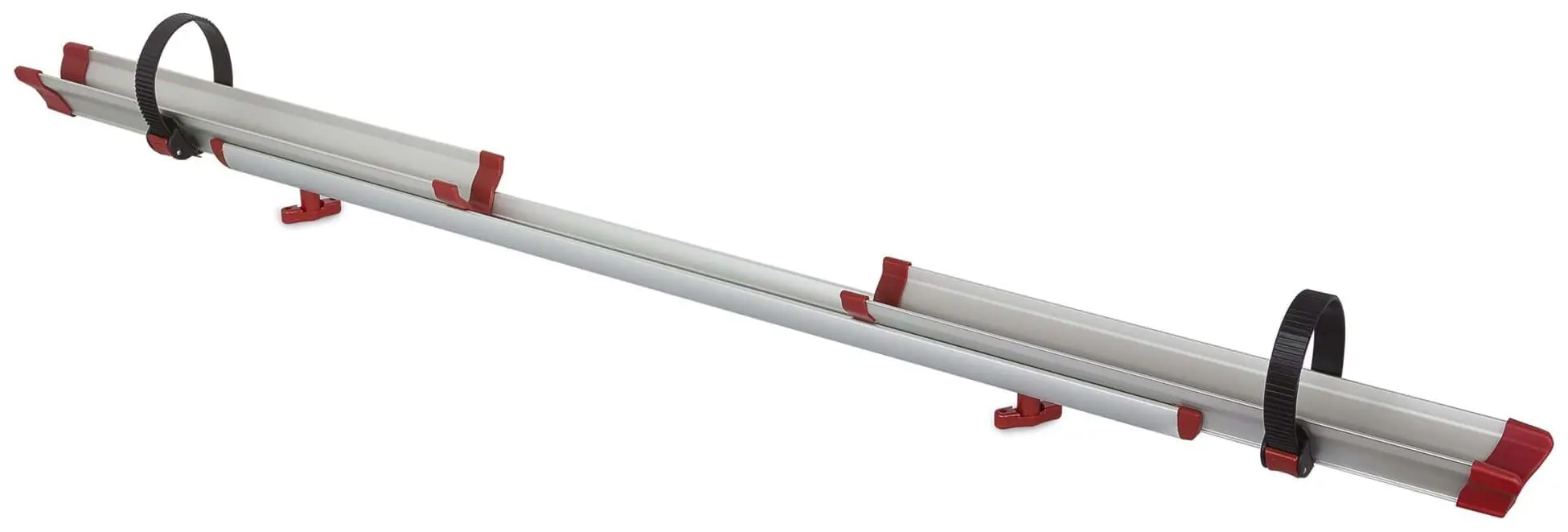The Fiamma Rail Quick C - Telescopic offers a practical solution for bike transportation on your caravan or motorhome. Crafted by Fiamma, a brand renowned for quality and durability in the outdoor and recreational vehicle industry, this telescopic rail is designed for versatility and ease of use. Featuring an adjustable three-bar system, the rail can be extended from a minimum of 101cm to a maximum of 167cm, ensuring a perfect fit for a variety of bike sizes. This adaptability makes the Fiamma Rail Quick C - Telescopic an ideal choice for outdoor enthusiasts who require a reliable and flexible means of transporting their bicycles. Additionally, the rail is supplied with two 'quick safe' straps, enhancing the security of your bikes during travel. The straps are designed to hold the bikes firmly in place, preventing movement and potential damage.