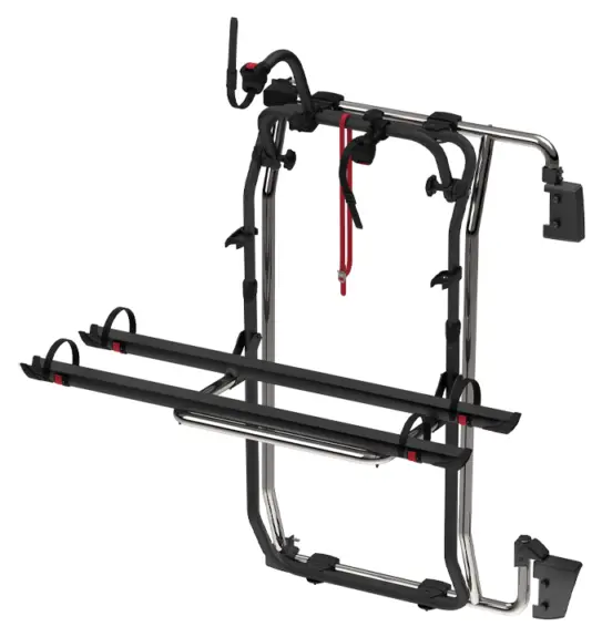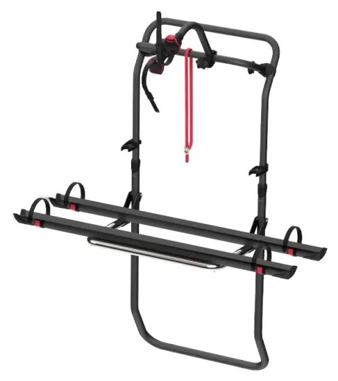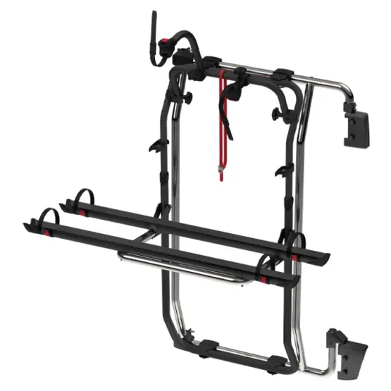 The Fiamma Carry-Bike Frame offers a dedicated rear door bike carrier solution for van conversions, designed to fit Fiat Ducato, Citroen Jumper, Peugeot Boxer, Mercedes Sprinter, VW Crafter, and MAN TGE models through vehicle-specific installation kits. This system carries two bikes as standard with the option to expand to three bikes or two e-bikes when paired with additional Fiamma components. The aluminium construction keeps the weight down to 9.4kg whilst providing a 50kg maximum load capacity, and the stainless steel AISI 304 rail support base guarantees long-term durability in all weather conditions.