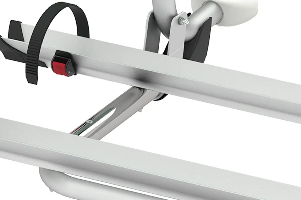 The L80 features an 80cm wheelbase between mounting rails, which is significantly longer than standard Fiamma carriers. Tandem bikes have extended wheelbases that do not fit on conventional bike carriers, requiring this extra rail length to properly support both wheels. The Rail Quick Pro system on this model accommodates the wider spacing whilst maintaining the structural integrity needed for the combined weight of tandem bikes.