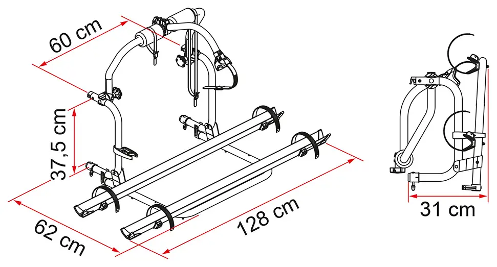 Aluminium rail support base: For transporting from 2 to 3 bikes