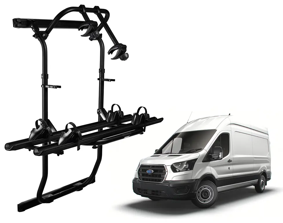 • Both Transit rear doors open fully even with bikes loaded on the rack