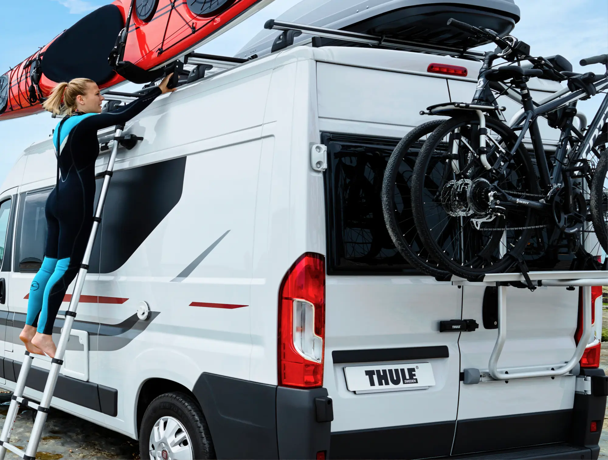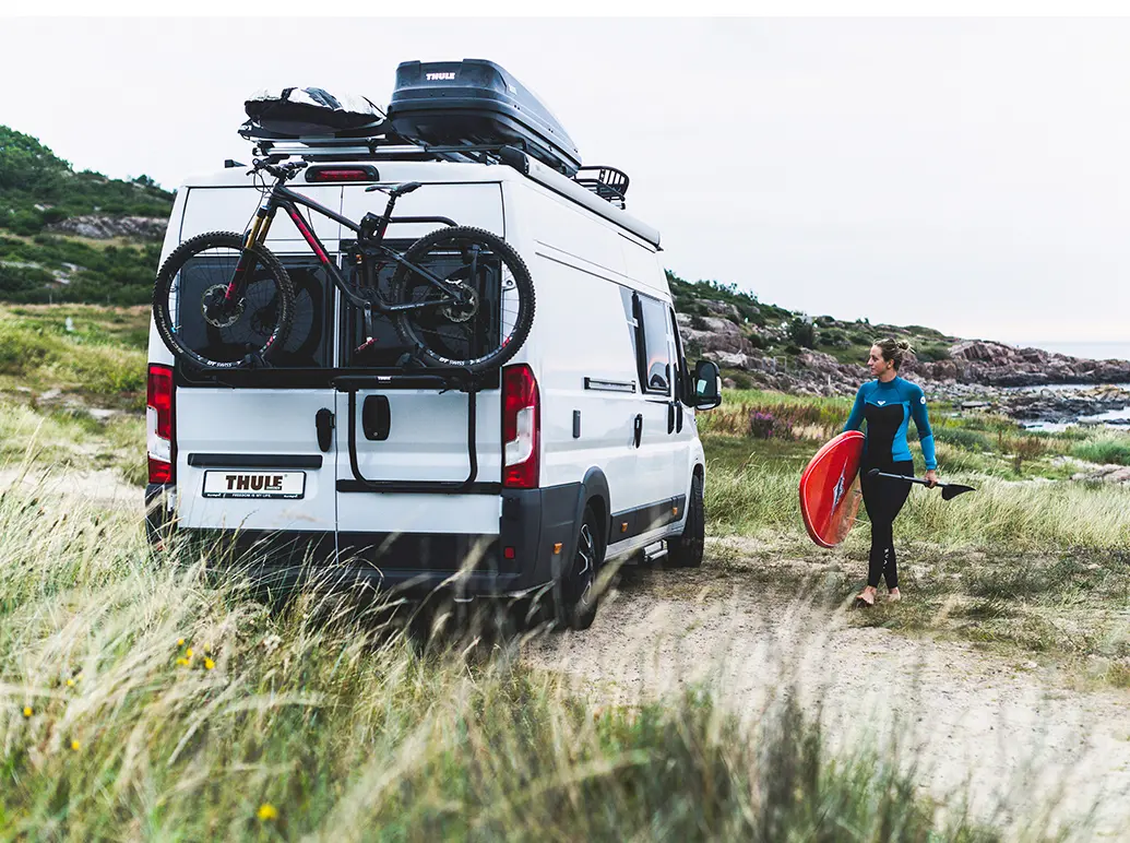 The rack isn't suitable for electric bikes due to their weight exceeding the 19kg per-bike limit. Thule's warranty covers manufacturing defects, giving you confidence in this Polish-made product that's been engineered specifically for Transit H3 dimensions. The black finish suits conversions with darker colour schemes, blending with most aftermarket bumpers and rear accessories.