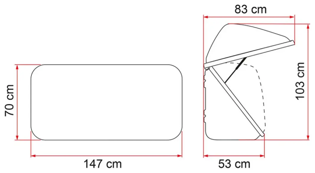 147 × 53 × 70 cm (W×D×H) |
