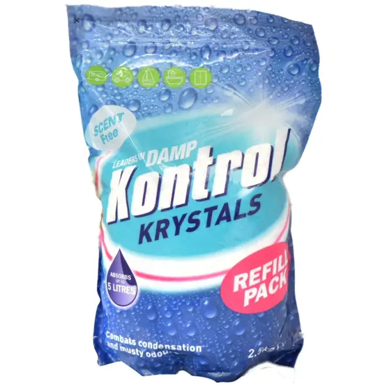 Kontrol Refill Moisture Krystals are calcium chloride crystals designed to absorb excess moisture in caravans, motorhomes, campervans and storage spaces. Each 2.5kg bag absorbs up to five litres of water from the air, providing extended moisture control for larger vehicles or longer storage periods. The scent-free formula works silently without needing electricity or batteries, making it ideal for vehicles in storage or off-grid camping situations where power isn't available.