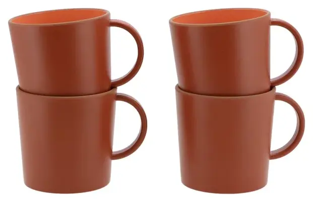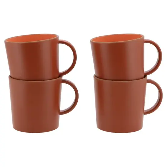 Yes, the Travellife Avila 4pc Mug Set is designed to coordinate perfectly with the Avila Terracotta/Tuape/White 12-piece dinner set, which includes plates and bowls in the same colour and RPET material. This allows you to build a complete matching tableware collection across your touring setup. Having coordinated tableware not only looks better when dining outdoors but also helps with organisation in compact caravan storage, as you can quickly identify which pieces belong to the same set when packing up after a trip.