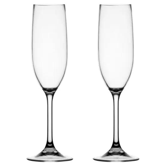 Tritan is a premium BPA free copolyester developed by Eastman Chemical Company that offers glass-like clarity and feel without the fragility. Unlike cheaper polycarbonate or acrylic camping glasses, Tritan maintains its crystal clear appearance through hundreds of dishwasher cycles without clouding or yellowing. The material is completely taste and odour neutral, so your champagne or prosecco tastes exactly as it should rather than picking up plastic flavours that cheaper alternatives can impart.