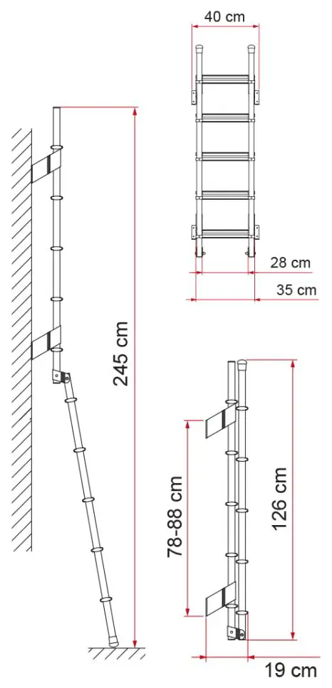 This ladder meets European standard UNI EN 131 for step dimensions, giving you confidence in both safety and compliance. The 35cm total width fits most motorhome rear walls without requiring modifications to existing fixtures. Installation hardware secures the ladder to the rear wall, and the folding mechanism stays reliable through years of use.
