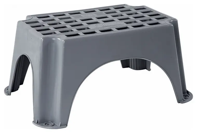 The Fiamma Step Platinum is a single-height freestanding step manufactured from UV-resistant high-density polyethylene for motorhomes and caravans. Measuring 40 x 25 x 23.5cm, this grey platinum step features a non-slip surface and holds up to 150kg. Built to EN1645-1646 safety standards, it sits directly on the ground rather than mounting to the vehicle, making it suitable for tourers, static vans and campervans where entry height sits between 20-25cm from the pitch.