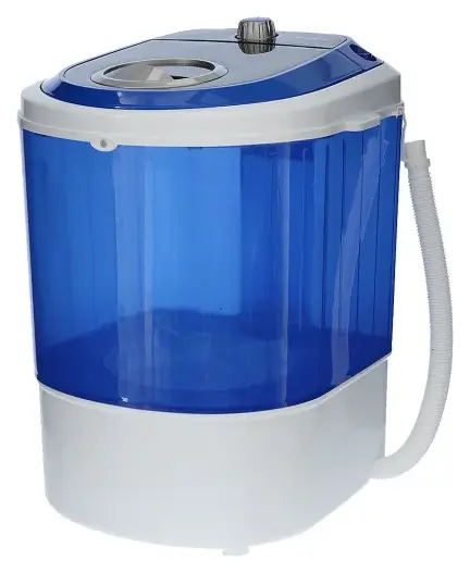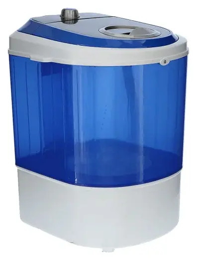 The Mestic MW-100 is a single tub washing machine without a separate spin dryer compartment. After the wash cycle completes, you'll need to wring out clothes manually or hang them to drip dry. Twin tub models offer separate spinning compartments, but single tub designs like the MW-100 are lighter and more compact, making them easier to store and transport in caravans and motorhomes.