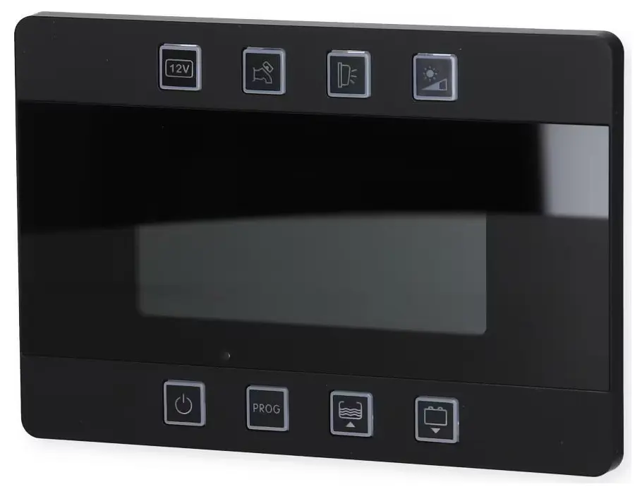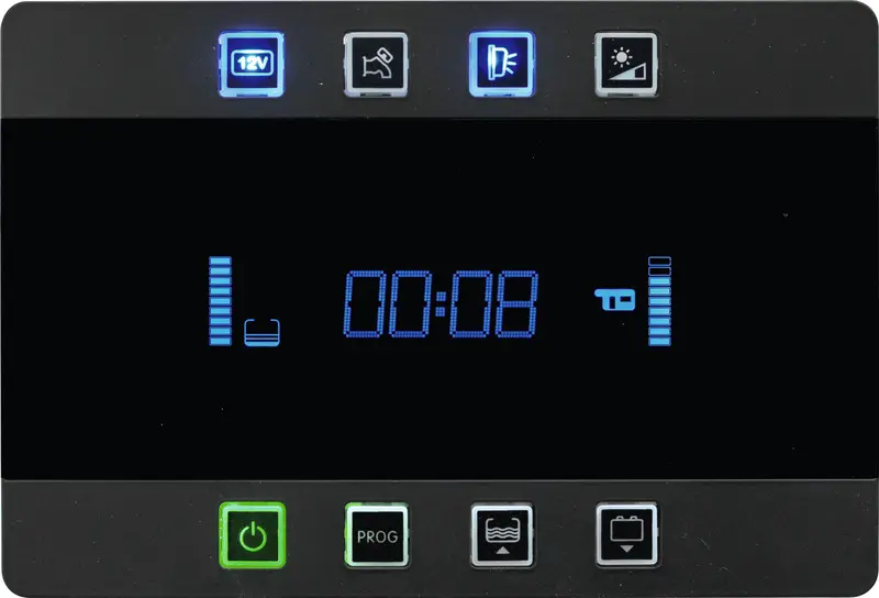 The CBE PC380 Control Panel Wildax gives you comprehensive monitoring of your motorhome's electrical systems through a 4.8-inch 12-colour negative LCD screen. This microprocessor-controlled unit tracks both your vehicle and service batteries with accurate voltage readings displayed as numbers and graphics, whilst the digital clock keeps you on schedule. You'll monitor fresh water levels shown as percentages alongside visual indicators, receive grey water tank alerts before overflow becomes an issue, and check internal and external temperatures without stepping outside.
