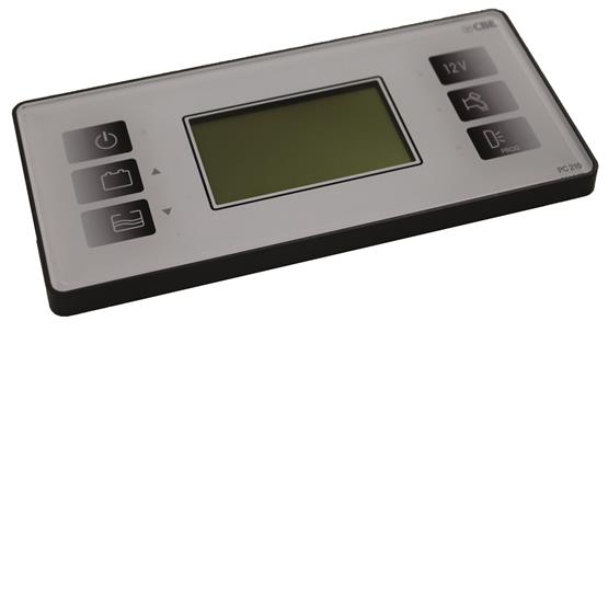 CBE PC 210 LCD control panel for caravan electrical systems.