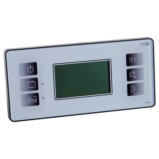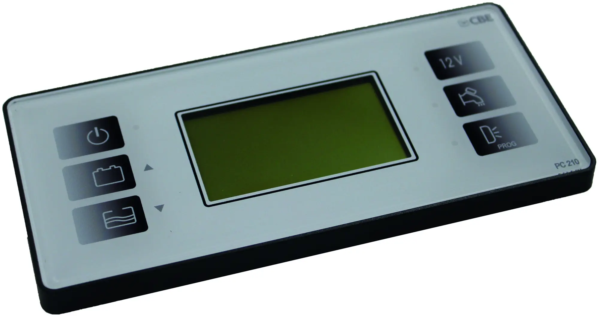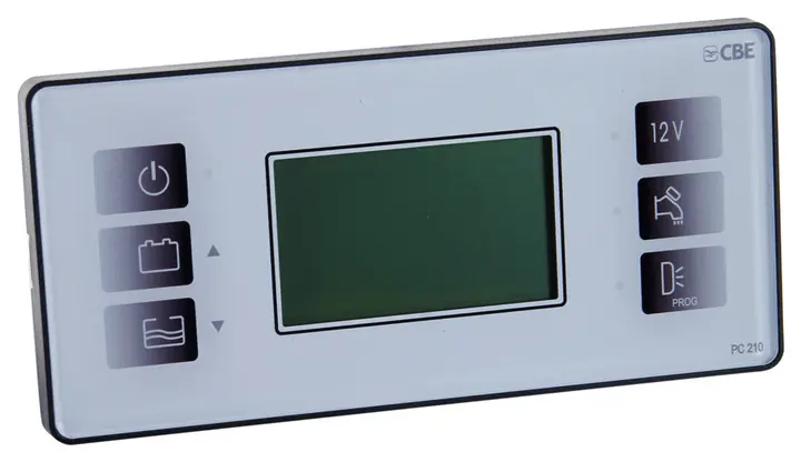 The CBE PC 210 Control Panel represents the heart of your leisure vehicle's electrical management system, offering microprocessor-controlled monitoring and control through a compact 2.9" graphic LCD display with 12-colour backlighting. This sophisticated unit monitors both your vehicle battery (B1) and leisure battery (B2) in real-time, displaying voltage levels both numerically and graphically, whilst simultaneously tracking fresh water tank levels, internal and external temperatures, and waste water status. The capacitive touch button interface eliminates mechanical switches entirely, providing a modern, responsive control experience that's built specifically for caravans, motorhomes and campervans.