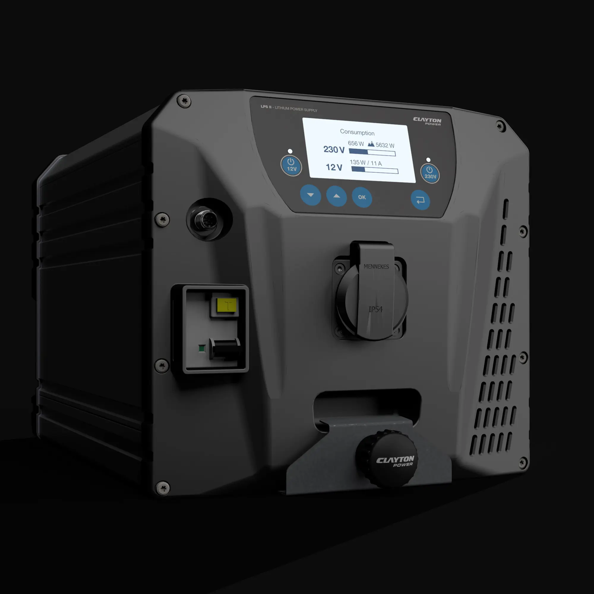 The system fits motorhomes, campervans, and caravans where space is tight but power demands are high. It sits between the basic setups that struggle with anything beyond lighting and the massive battery banks that cost as much as a used car. You'll run kettles, microwaves, hairdryers, and power tools without the voltage drop that plagues cheaper systems. The 2000W output runs for 10 minutes (1500W continuous at 25°C ambient), with 3000W peak capacity for starting high-draw appliances. One limitation to note is the built-in battery isn't user-replaceable due to the compact sealed design, though you can add external Clayton G4 batteries if you need more capacity. The LPS2-2000 comes with Neutrik locking connectors for 230V connections (preventing accidental disconnection), M8 terminals for DC, and includes safety features like 30mA/13A RCBO protection, overcharge prevention, and thermal management through forced air cooling.