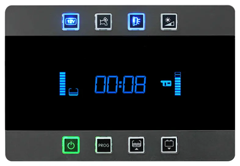 The save service battery function monitors leisure battery voltage continuously and automatically disconnects non-essential loads when voltage drops below a preset threshold, typically around 11.5V for a 12V battery. This prevents deep discharge that damages leisure batteries and shortens their lifespan. The system maintains power to critical circuits whilst protecting battery health. You can see the battery status on the colour LCD display showing both voltage readings and graphical charge indicators.