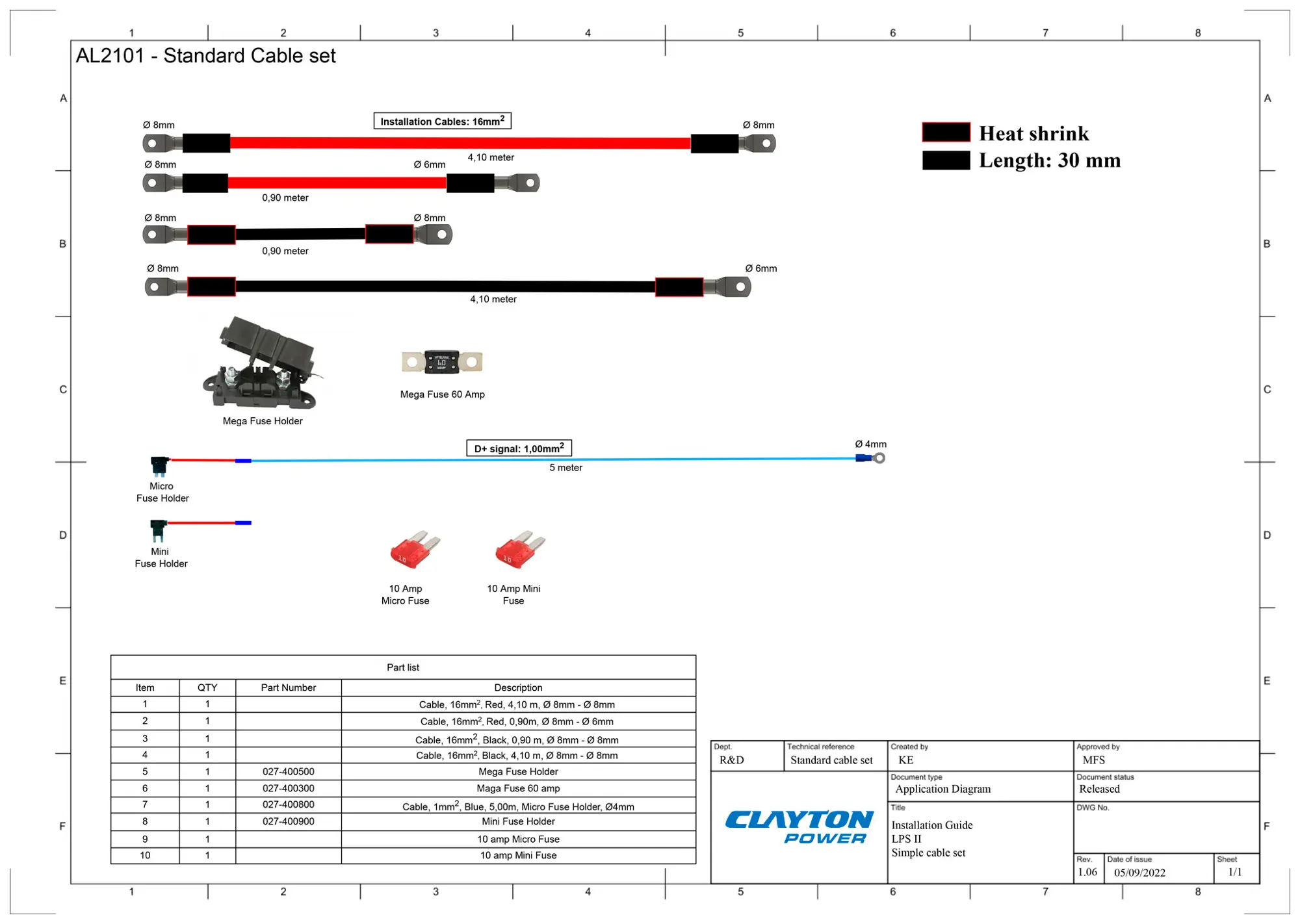 Clayton Power 5m Alternator Cable Set - LPS II Standard Charging Kit image 1 Clayton Power 5m Alternator Cable Set - LPS II Standard Charging Kit image 2