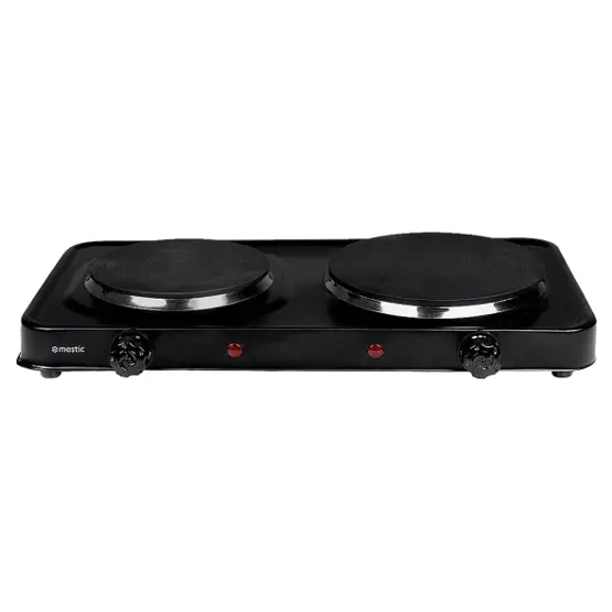 The Mestic Double Stove MKT-200 UK is a freestanding electric camping cooker designed for caravanners, motorhome owners and campers who need reliable cooking at the campsite or when grid power is available. This two-burner model provides a combined total power output with a 1000W smaller burner and a 1500W larger burner, each controlled independently through a six-setting heat dial to suit different cooking needs. The cooking surfaces measure 15cm and 18cm diameter, giving enough room for standard camping pans whilst the compact footprint of 46.5cm wide means it fits neatly on most worktops without taking up excessive space.?