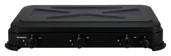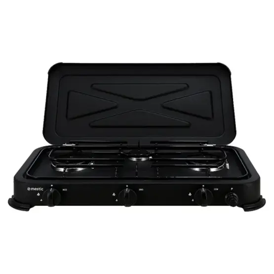 The Mestic Gas Cooker MGC300 30MB is a three-burner portable gas hob designed for caravanning, motorhoming, and camping trips where you need proper cooking facilities. It runs on standard butane/propane mix gas bottles at 30mbar, offering 5250w of total power across two 2.2kw burners and one smaller 0.85kw burner. This setup gives you flexibility for cooking multiple pans at once, with the larger burners handling your main dishes while the smaller one keeps sauces warm or boils a kettle.