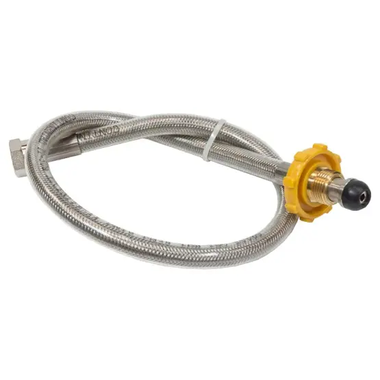 The W20 female outlet accepts standard bulkhead or in-line regulators, covering most leisure gas setups. Its stainless steel braided construction protects the inner rubber core from damage and corrosion, which matters when you're dealing with moisture around caravans and motorhomes. The hose handles both propane and butane, so you're not locked into one fuel type if you're travelling or changing suppliers.