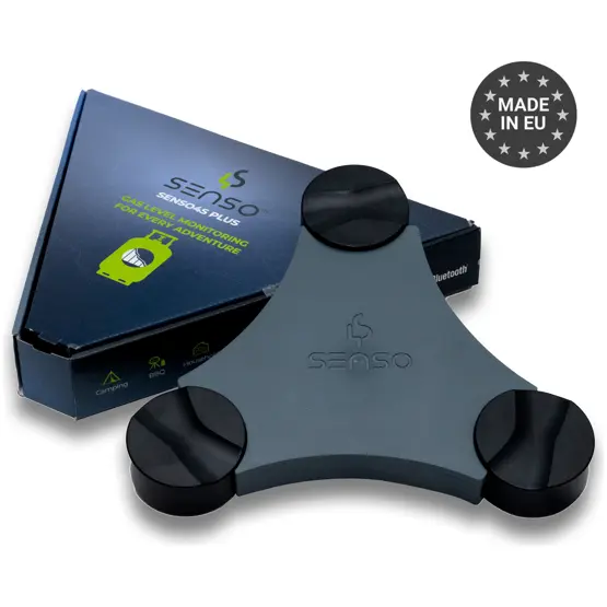 The Senso4s PLUS is a precision digital gas cylinder monitor designed specifically for motorhomes, caravans, and campervans. This Bluetooth-enabled weighing device sits beneath your gas cylinder and measures consumption every 15 minutes, transmitting accurate data to your smartphone via the free Senso4s app. Compatible with all standard steel, aluminium, and composite gas cylinders from 18cm to 32cm diameter, the adjustable pull-out feet accommodate different cylinder sizes whilst maintaining the precision weighing accuracy of ±1%.