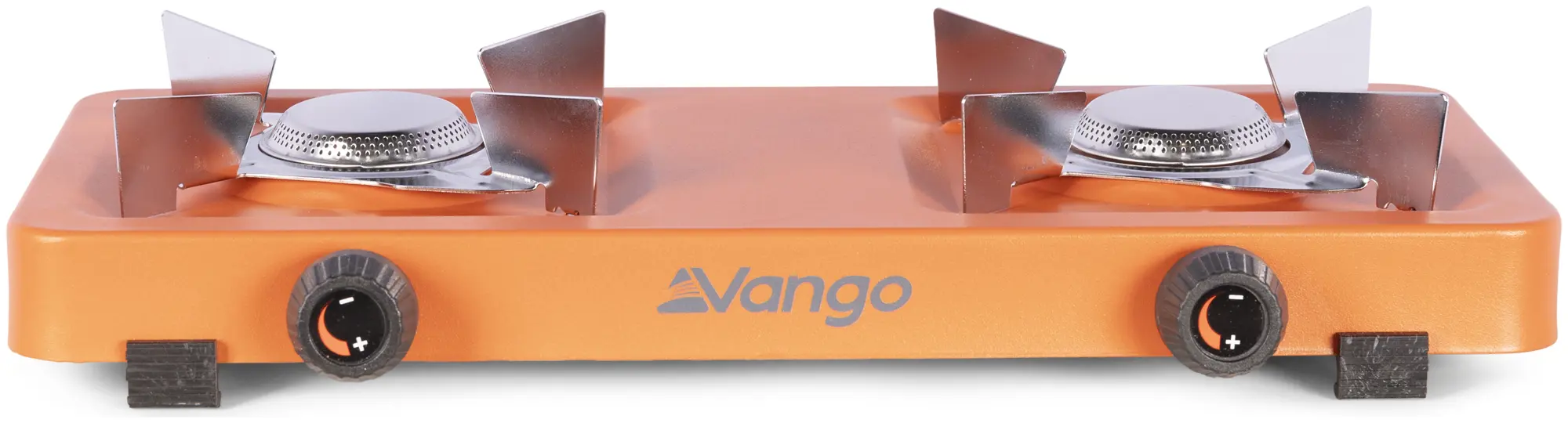 The Vango Blaze Double brings 6kW of combined cooking power to your pitch through two independent 3kW stainless steel burners. Each burner features high-low control, letting you manage different cooking temperatures simultaneously - bring water to a rolling boil on one side while simmering your evening stew on the other. The threaded connection accepts EN417 self-sealing gas cartridges, and the included PVC hose incorporates an auto shut-off mechanism that stops gas flow when you disconnect the cartridge.