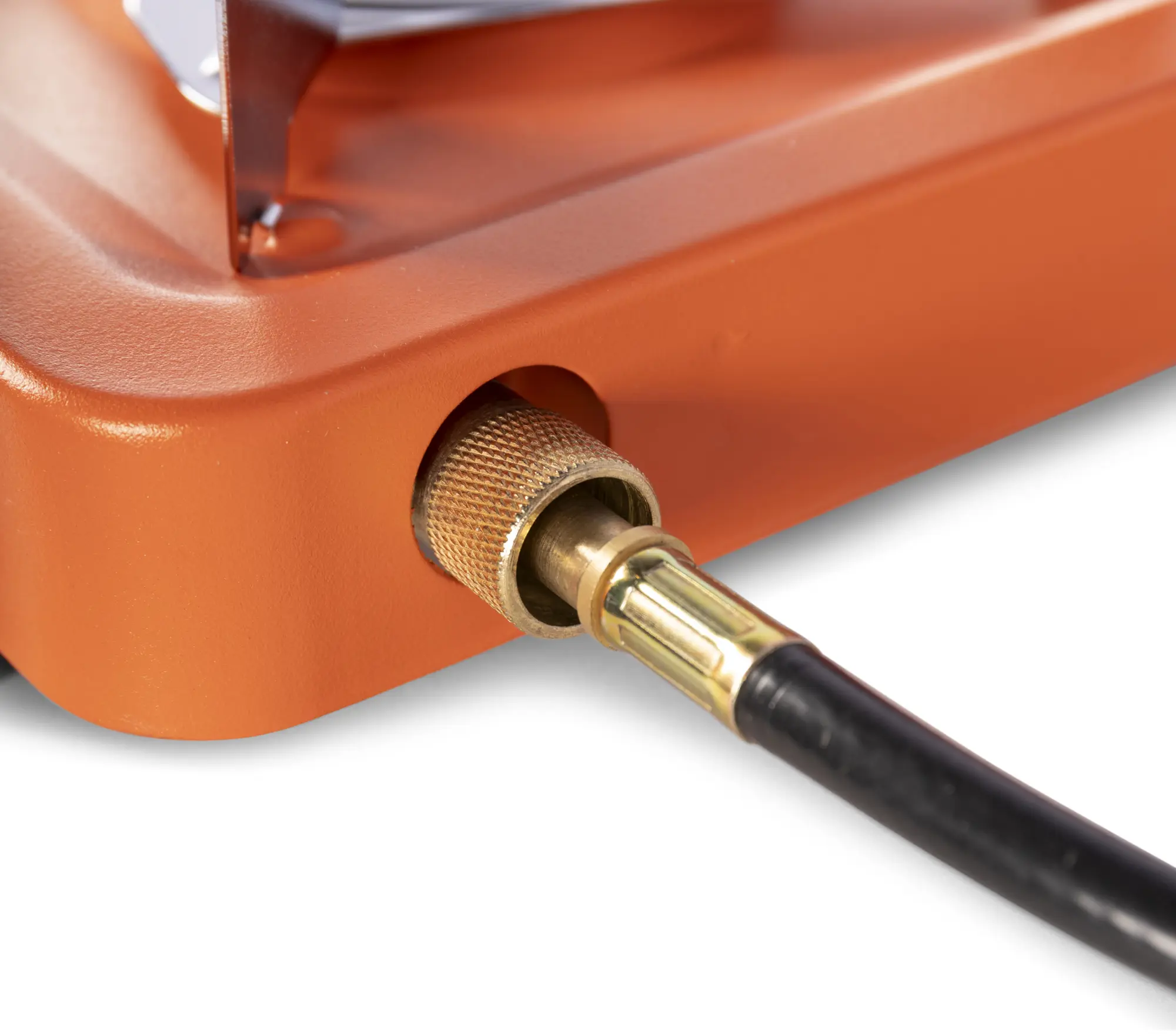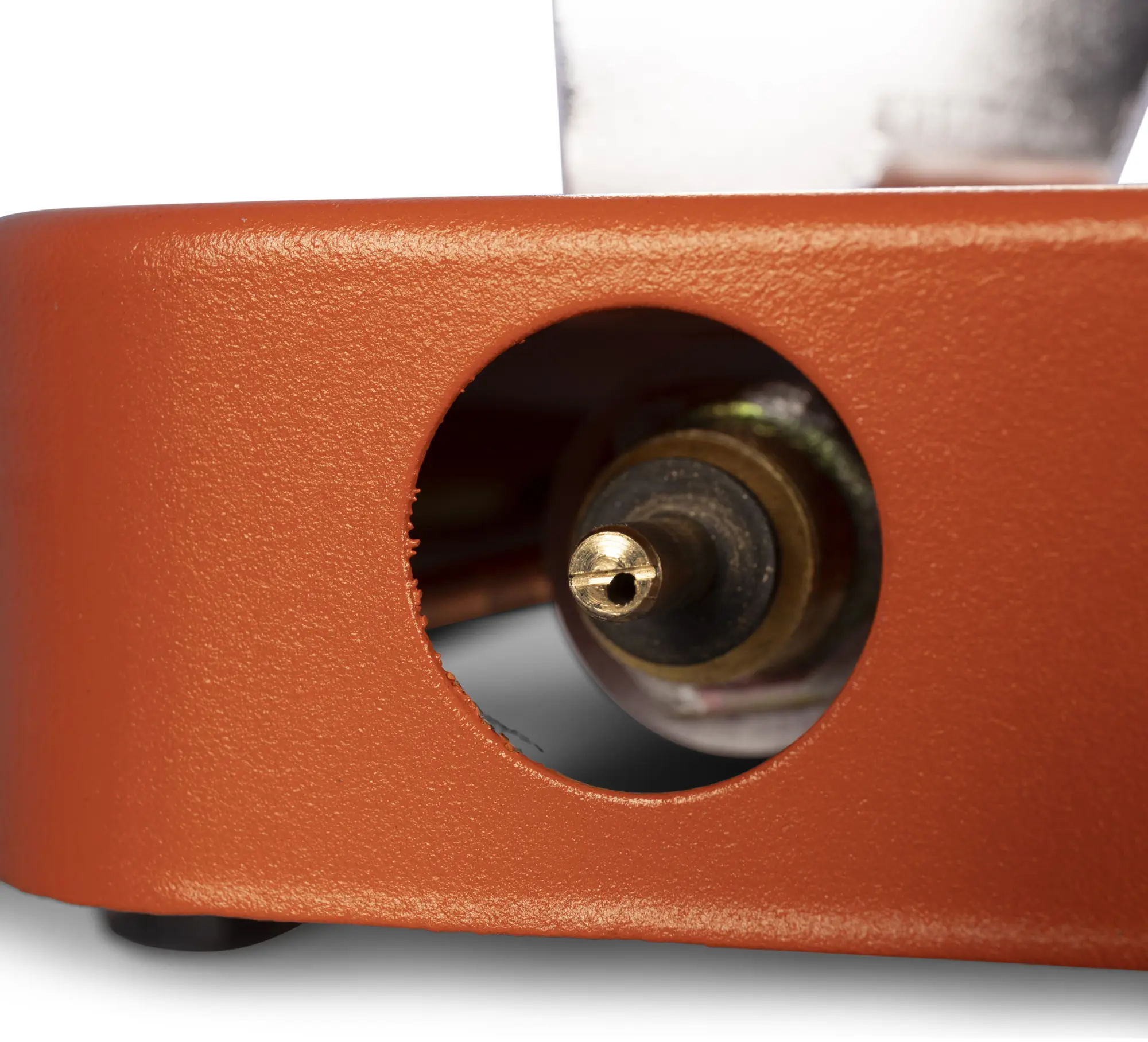 The PVC hose includes an auto shut-off mechanism that stops gas flow when you disconnect the cartridge. This safety feature prevents gas leakage during cartridge changes. Always turn off the burner controls before disconnecting cartridges, even with the auto shut-off present. The shut-off valve works in combination with the self-sealing EN417 cartridge design to create a double-protection system against gas leaks.