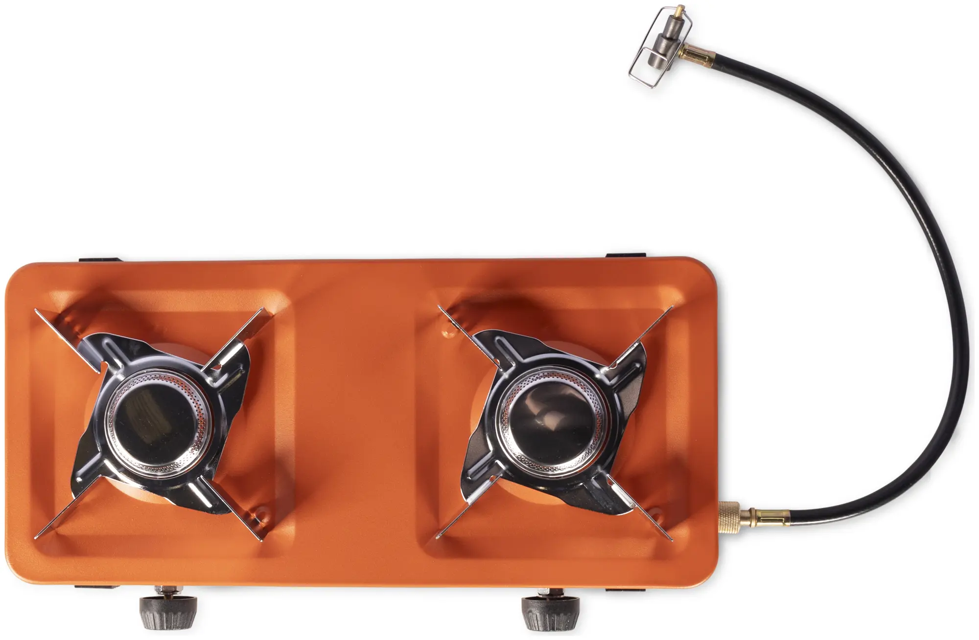 This double burner sits low to the ground, creating a stable cooking platform that won't tip easily on uneven pitches. The plastic feet grip well on most surfaces, from groundsheets to picnic tables. Stainless steel burners resist corrosion and wipe clean after cooking, though you'll want to let them cool completely first. The compact design packs down small for storage in your camping kitchen kit. Worth noting that EN417 cartridges sell separately, and you'll need to ensure adequate ventilation when cooking - this stove produces considerable heat output and shouldn't be used inside tents or enclosed spaces.