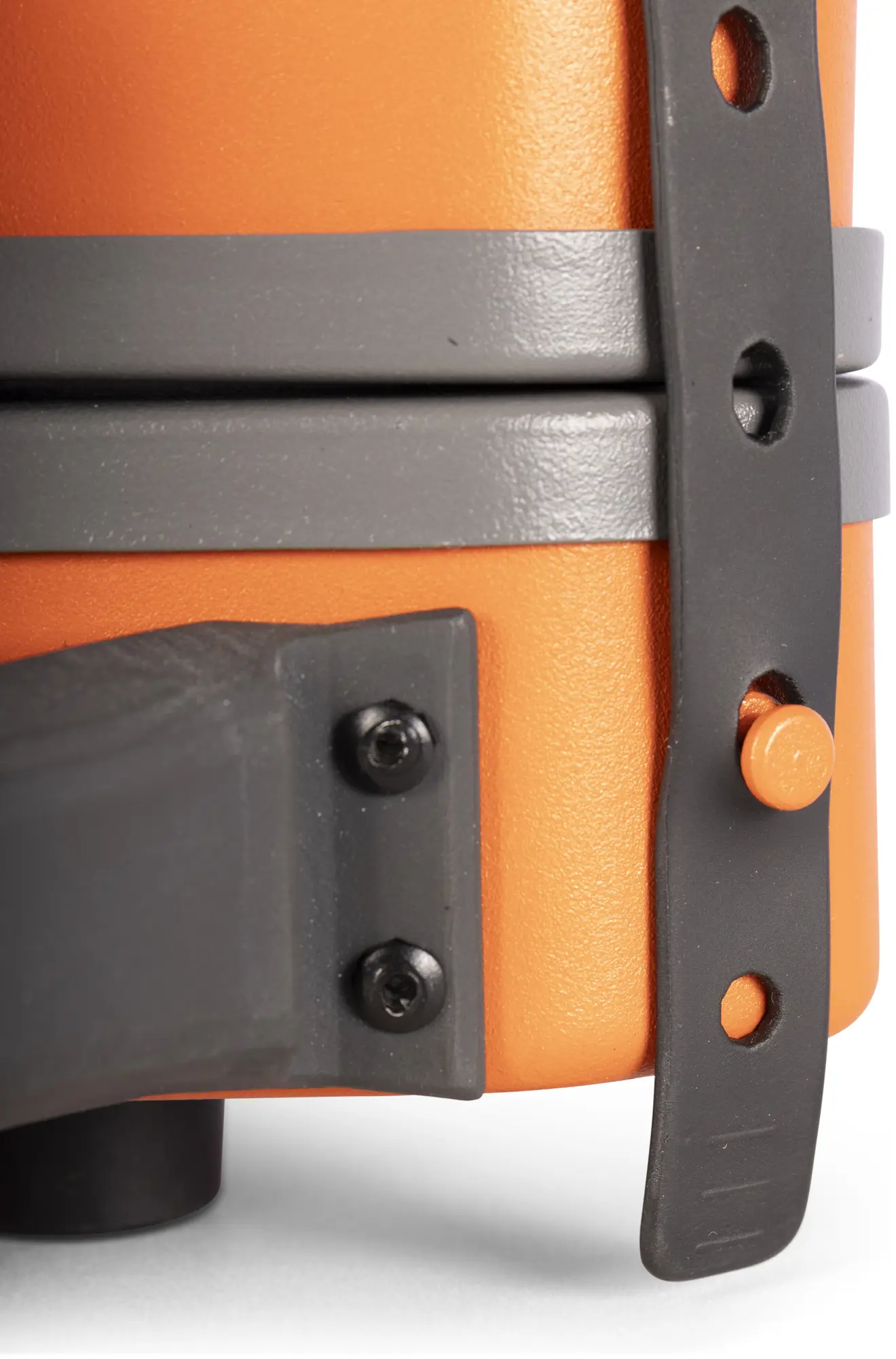The retractable braided PTFE hose includes an automatic cut-off valve that stops gas flow if you disconnect the canister while a burner's still on. This hose tucks away when you fold the unit, keeping everything compact. The recessed drip tray sits below the burners to catch spills and provides some wind protection for the flames, though you'll still want a separate windshield in proper breezy conditions. Stainless steel construction on the burners handles the high heat output and regular outdoor use better than painted or coated alternatives. A carry handle on the side lets you move the cooker when it's set up, useful for repositioning around your pitch.
