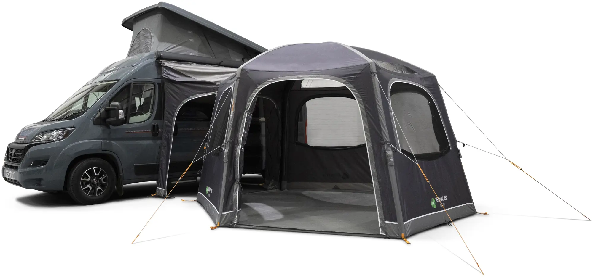 Setting up a stable, expansive space easily and in just 10 minutes is what the Vango HexAway Pro Air Low Driveaway Awning offers you, thanks to its single inflation system and pre-angled beams that not only make the awning quick and easy to erect but also provide greater internal space and strength against the elements. This Vango Driveaway awning offers a flat entry access door, ensuring easy mobility for wheelchairs, prams, and anyone who requires it. The connecting tunnel features two doors, seamlessly integrating with multiple vehicle attachment methods like pre-attached 6mm Kador, 8M over-vehicle straps, roof bar attachment tabs, and more, making it an extremely versatile option for any vehicle.