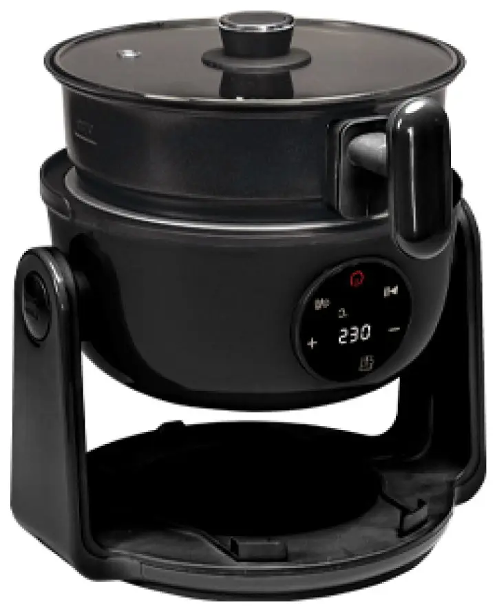 The air frying mode reaches between 40-200°C, covering everything from gentle warming to high-temperature crisping. When you flip the unit 180 degrees, hob mode takes over with temperatures up to 230°C, giving you a hot plate surface for boiling, frying, or heating sauces. The included air fryer basket, tempered glass lid, and metal pot provide the essentials for different cooking styles. A digital display shows your selected temperature and timer settings, while the automatic shut-off provides safety when you're preparing meals in confined spaces.