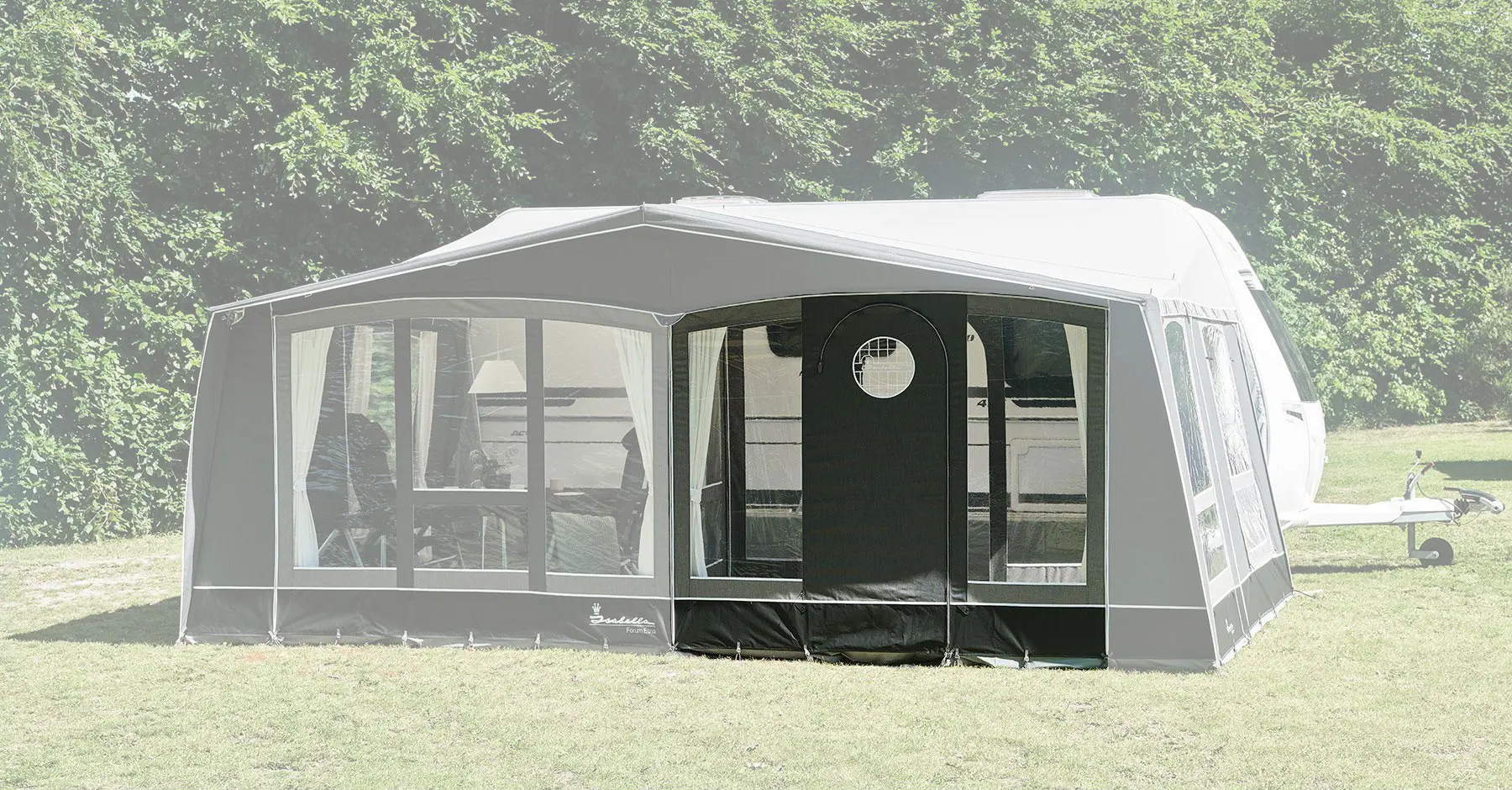 When you buy an extra front panel, you can create a small lobby, giving you even more flexibility in your Forum awning.