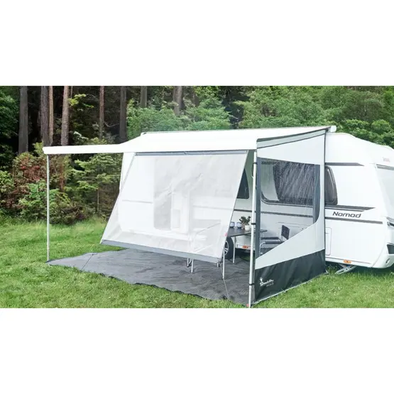 Caravanners and motorhome owners who spend extended periods pitched up during warmer months get the most use from these screens, particularly when the sun sits low in the morning or evening and standard canopies don't offer adequate coverage. The breathable mesh construction makes a noticeable difference to temperatures underneath, with the fabric allowing breezes through whilst cutting solar heat gain. The 200cm x 145cm version includes beading on both short edges, earning it the nickname "Turntable" because it can be fitted horizontally or vertically depending on where shade is needed most.