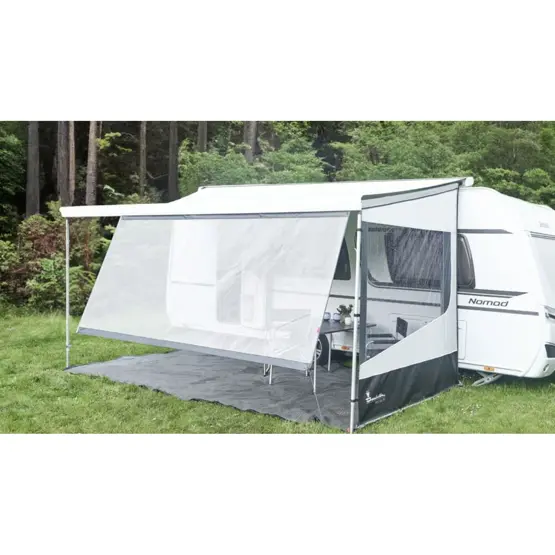 Caravanners and motorhome owners who spend extended periods pitched up during warmer months get the most use from these screens, particularly when the sun sits low in the morning or evening and standard canopies don't offer adequate coverage. The breathable mesh construction makes a noticeable difference to temperatures underneath, with the fabric allowing breezes through whilst cutting solar heat gain. The 200cm x 145cm version includes beading on both short edges, earning it the nickname "Turntable" because it can be fitted horizontally or vertically depending on where shade is needed most.