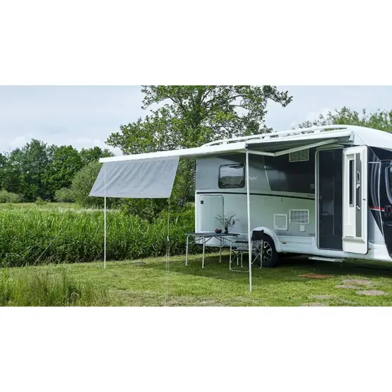 Caravanners and motorhome owners who spend extended periods pitched up during warmer months get the most use from these screens, particularly when the sun sits low in the morning or evening and standard canopies don't offer adequate coverage. The breathable mesh construction makes a noticeable difference to temperatures underneath, with the fabric allowing breezes through whilst cutting solar heat gain. The 200cm x 145cm version includes beading on both short edges, earning it the nickname "Turntable" because it can be fitted horizontally or vertically depending on where shade is needed most.