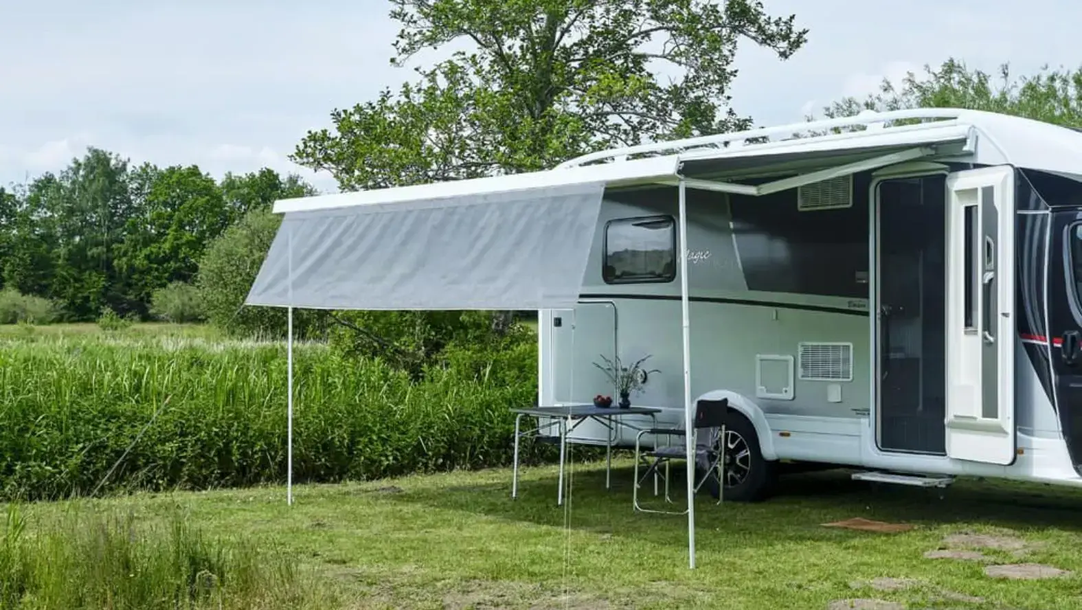 The Isabella Shade Screen has been tested to fit Thule, Dometic, and Fiamma wind out canopies, which represent the majority of caravan and motorhome installations in the UK. The screen uses a standard beading size that slides into the front rail of these awnings. Most wind out canopies manufactured after 2010 use either 5mm or 6mm rail channels, and the Isabella screen accommodates both dimensions. The 200cm x 75cm version features beading on both edges specifically to fit both rail sizes. If your wind out canopy is from a different manufacturer or is an older model, measure the front rail channel width before purchasing to confirm compatibility.