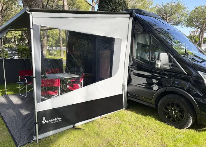 Installation takes just four minutes according to manufacturer specifications, making the Wind Side 250 an accessible upgrade for caravanners who want extra shelter without complex setup procedures. The system includes tent pegs for additional ground anchoring, and the telescopic pole can be repositioned centrally on your wind-out canopy to create two separate outdoor rooms when required. However, the 245-270cm height requirement means compatibility should be verified before purchase, as some older caravans or motorhomes with non-standard rail heights may require alternative solutions.