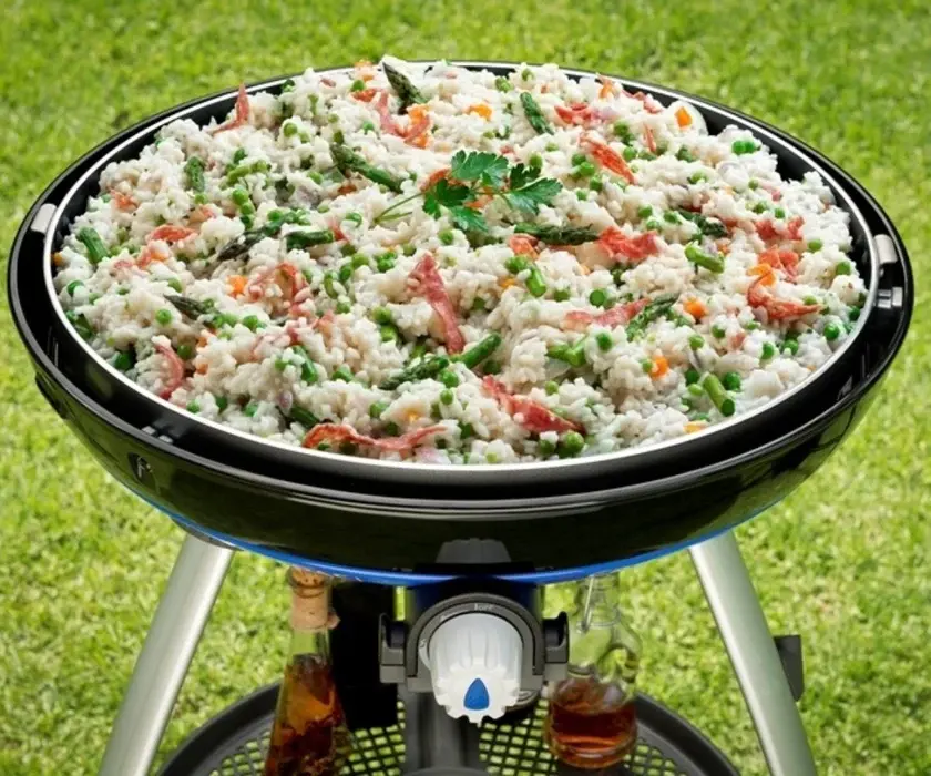 The Chef Pan 50 can be used with compatible Cadac dome lids designed for the Carri Chef 50 and Citi Chef 50 ranges. Using the dome lid creates an oven effect that speeds up cooking, retains moisture, and allows for roasting and baking-style cooking on your portable BBQ. The dome also acts as a windshield in breezy campsite conditions. However, many users cook without the lid for traditional frying and sautéing.