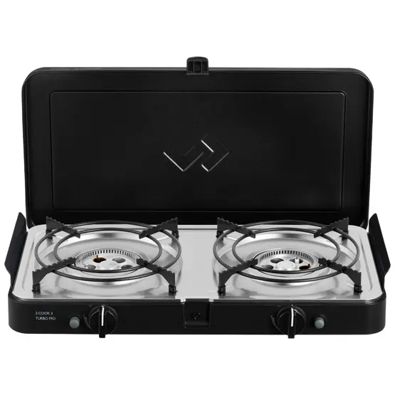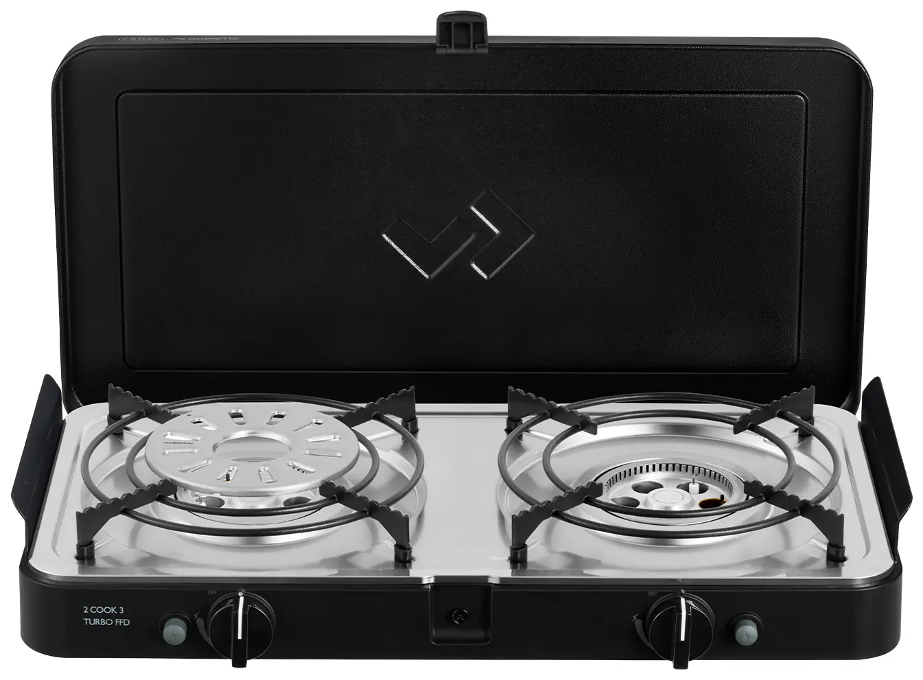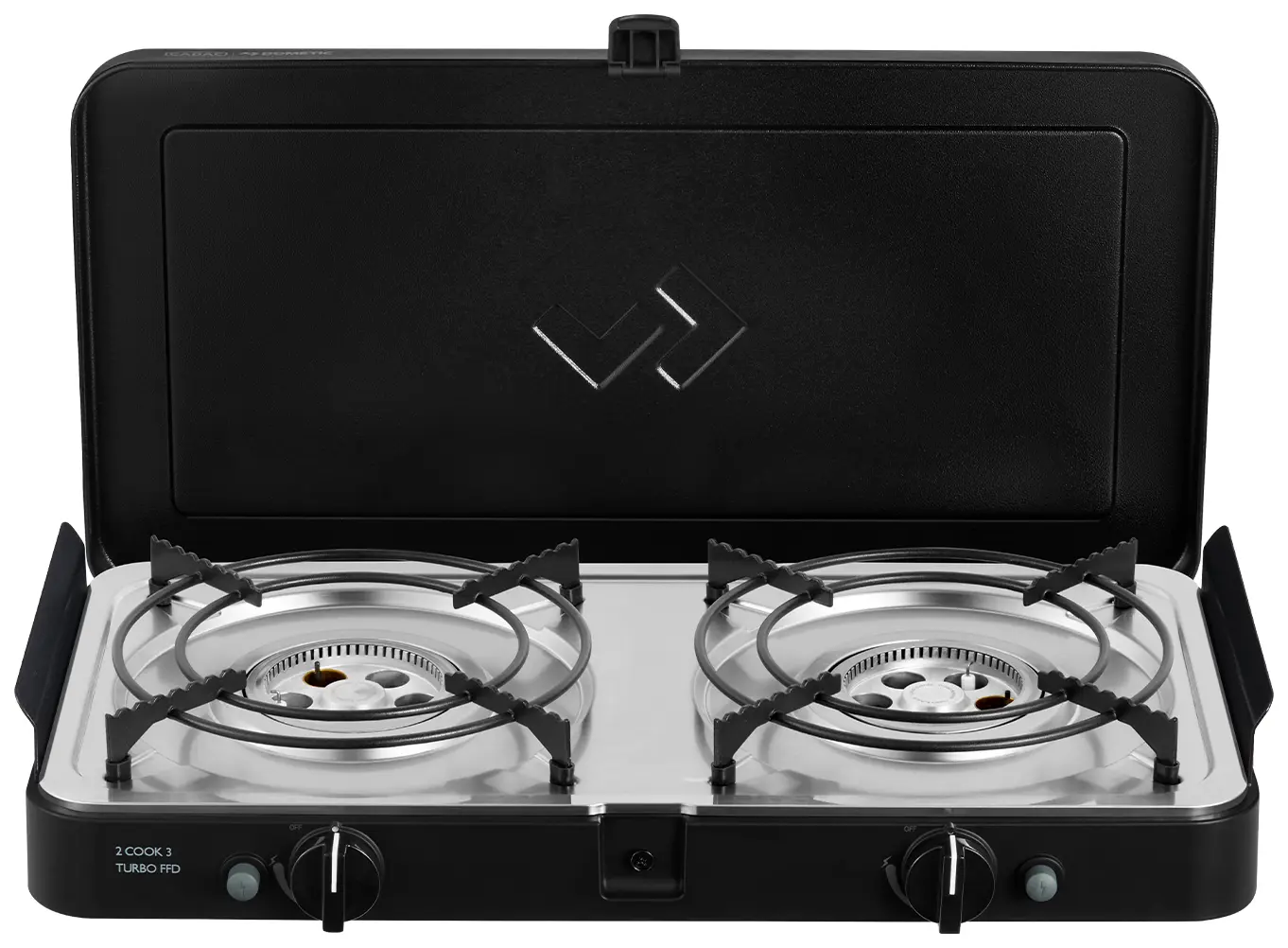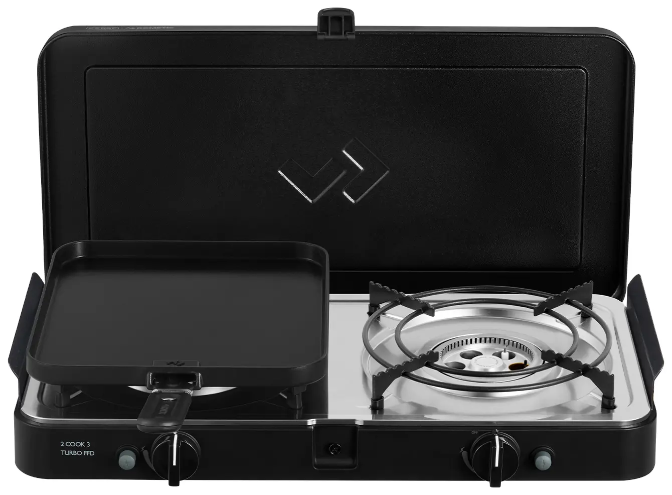 The Cadac 2 Cook Turbo FFD Deluxe QR transforms outdoor cooking with its twin burner design and flame failure safety system. Each burner features integrated FFD protection that automatically cuts the gas supply if flames extinguish unexpectedly, making it certified safe for both indoor caravan use and outdoor camping. The recessed Turbo burners deliver concentrated heat whilst staying protected from wind, and independent piezo ignition means you'll get reliable lighting every time.