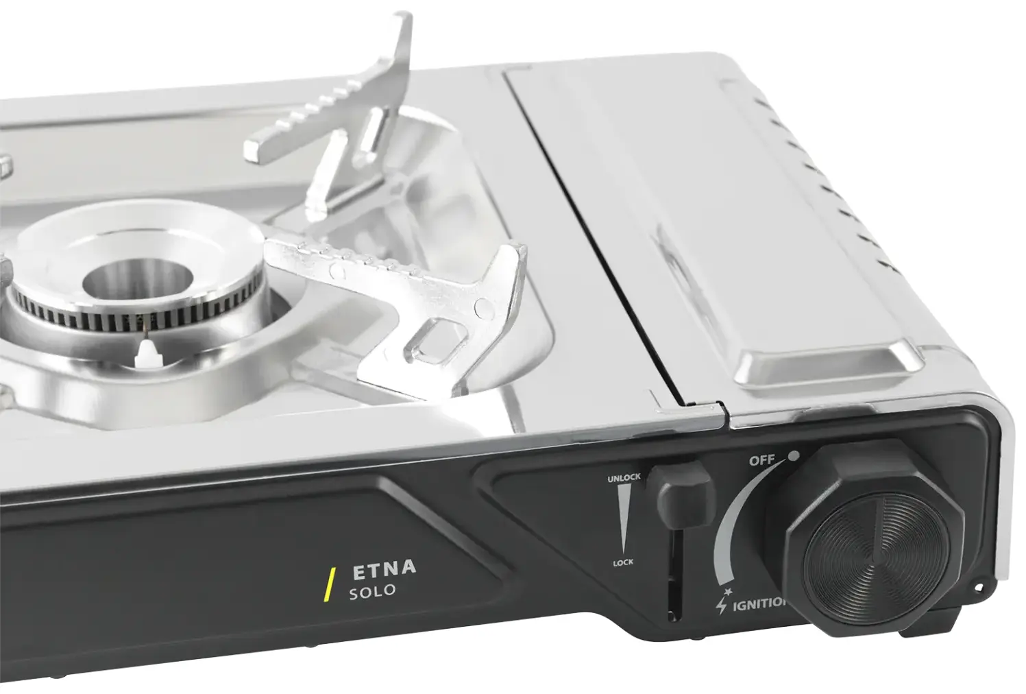 Yes, at 1.3kg including the travel case, the Etna Solo is light enough for backpacking while providing 2200W of cooking power. The compact 33.2 x 27.6 x 10.5 cm packed size fits well in rucksacks. The stainless steel construction makes it more durable than ultralight aluminium alternatives for regular use.