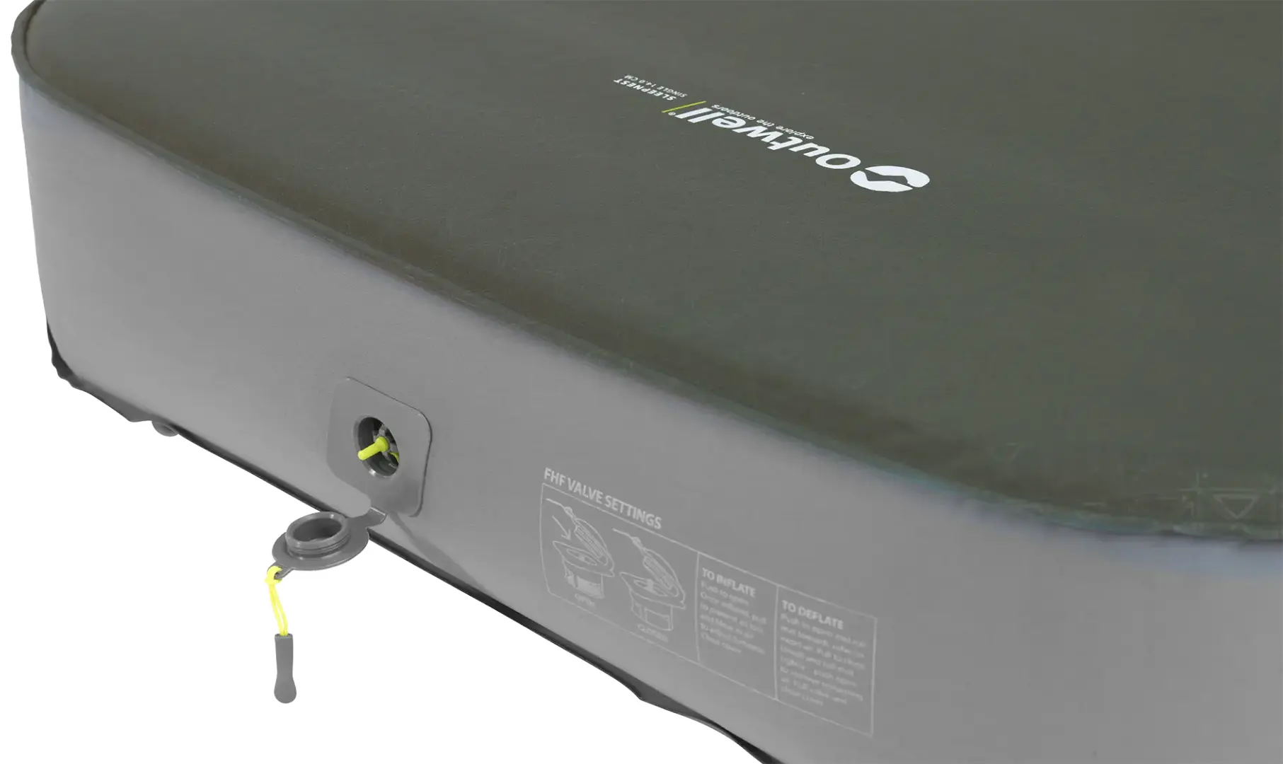 The construction combines TPU lamination with 30D stretch polyester on the top and sides. TPU bonds directly to the fabric rather than being glued, which eliminates the delamination issues that plague traditional PVC mats after a few seasons of temperature changes. The stretch polyester gives against your body rather than feeling rigid like standard polyester weaves. Outwell's Double Flat High-Flow valve system speeds up both inflation and deflation significantly compared to single-valve designs. You'll still need to give it 5-10 minutes to self-inflate fully on first use, then top it up with a few breaths to your preferred firmness. The foam cavities are larger than typical self-inflating mats, which helps with initial inflation speed and reduces the overall weight.