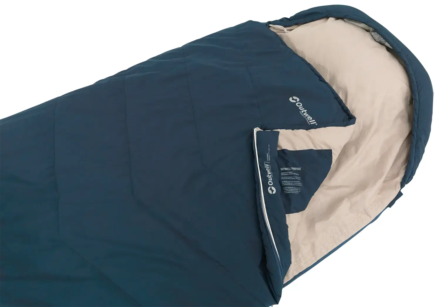 Outwell labels this as PFAS-free, which matters if you're conscious about forever chemicals in outdoor gear. The compression stuff sack includes a cap design that helps push air out as you pack. Seasons are listed as 1-2, meaning late spring through early autumn in British conditions. The left-side zip configuration means you can pair it with a right-zip model if Outwell makes one, though check compatibility before assuming they'll link together. At this price point, you're paying for the recycled materials and reasonable packability rather than ultralight performance or four-season capability.