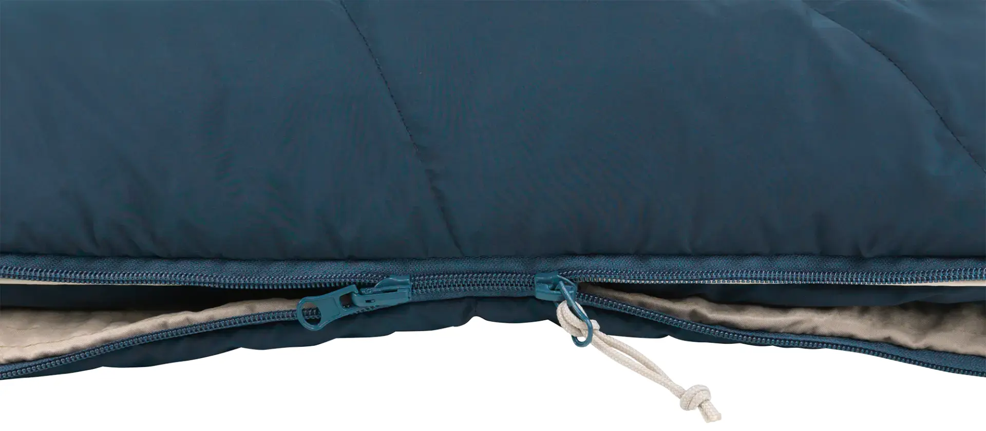 The Caldera Prime has a left-side zip configuration, so it would theoretically pair with a right-zip version to create a double sleeping setup. You need to confirm Outwell makes a right-zip Caldera Prime model and that the zipper systems are compatible before purchasing with this intention, as not all sleeping bag zips match even within the same brand range.