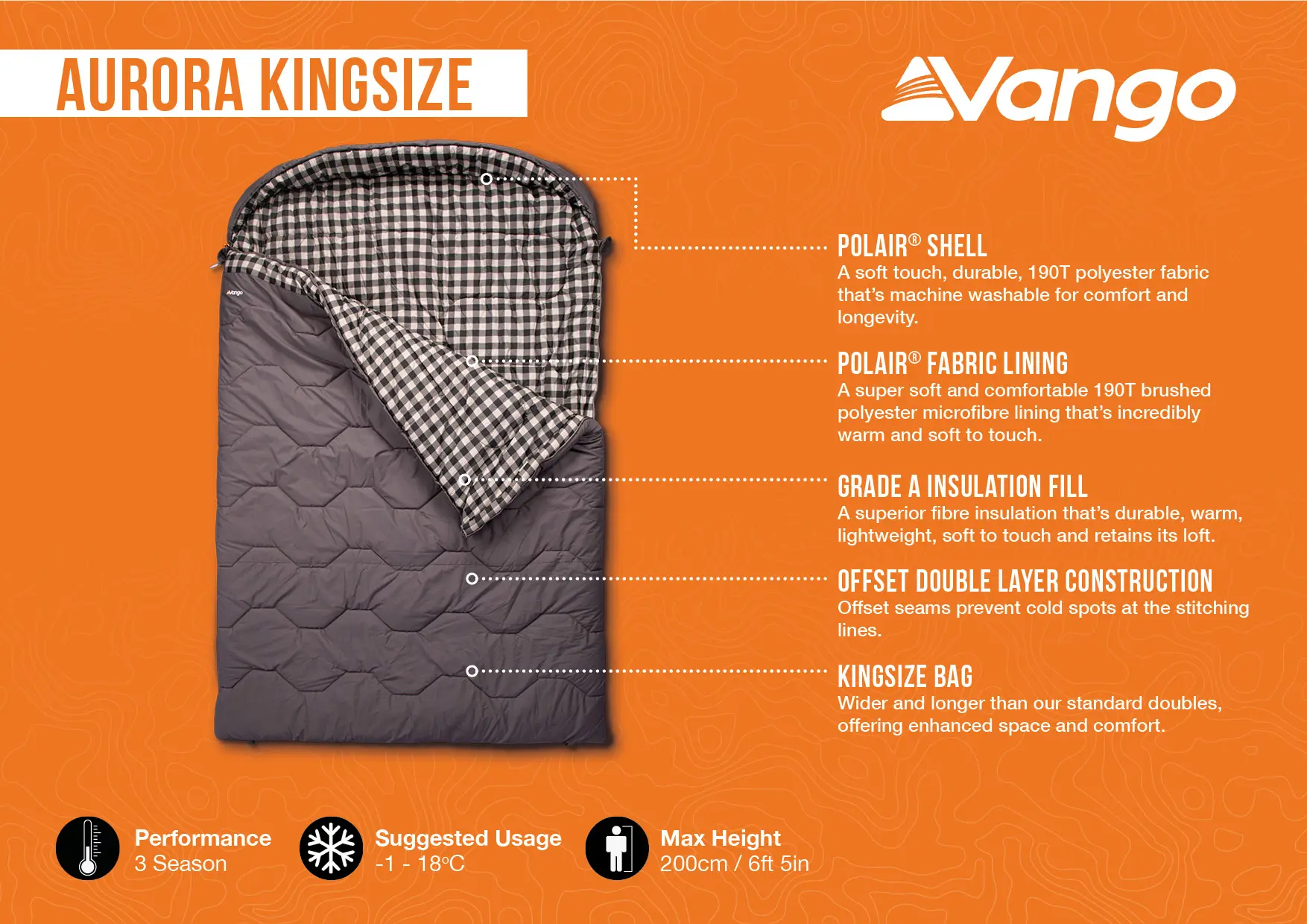 Vango Aurora Kingsize Sleeping Bag image 1 Vango Aurora Kingsize Sleeping Bag image 2 Vango Aurora Kingsize Sleeping Bag image 3 Vango Aurora Kingsize Sleeping Bag image 4 Vango Aurora Kingsize Sleeping Bag image 5 Vango Aurora Kingsize Sleeping Bag image 6