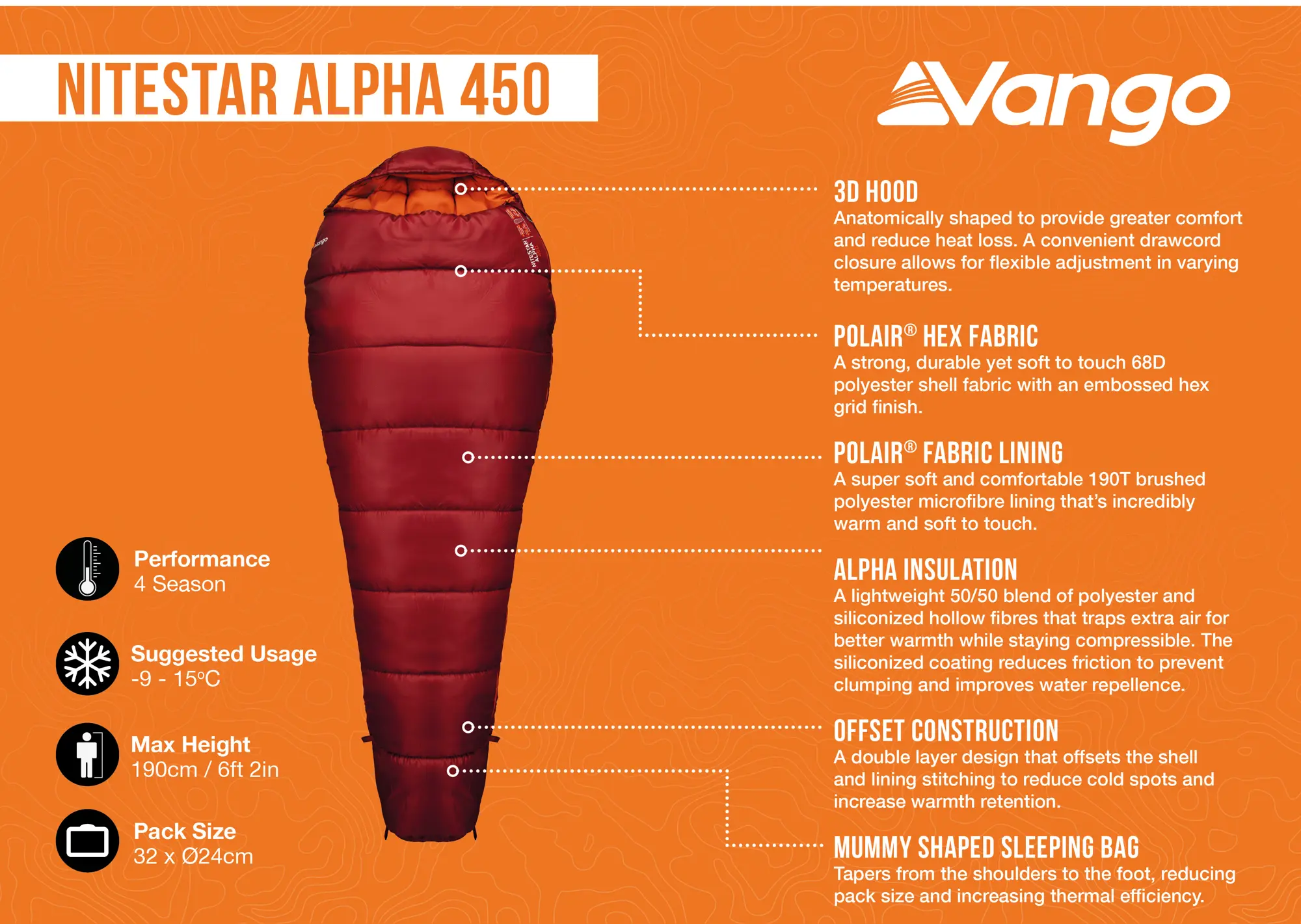 Vango Nitestar Alpha 450 Sleeping Bag Features