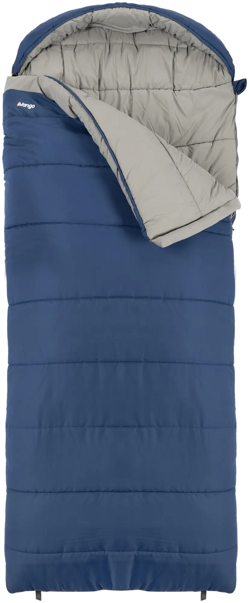Grande means this sleeping bag is wider and longer than Vango's standard single bags. The square shape provides extra shoulder and hip room compared to tapered mummy bags, making it suitable for taller people, those who move around during sleep, or anyone who feels restricted in standard sleeping bags.