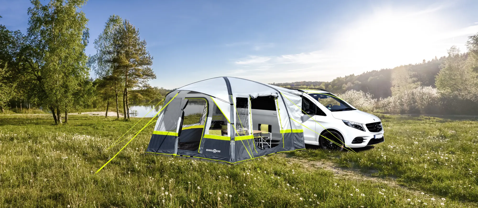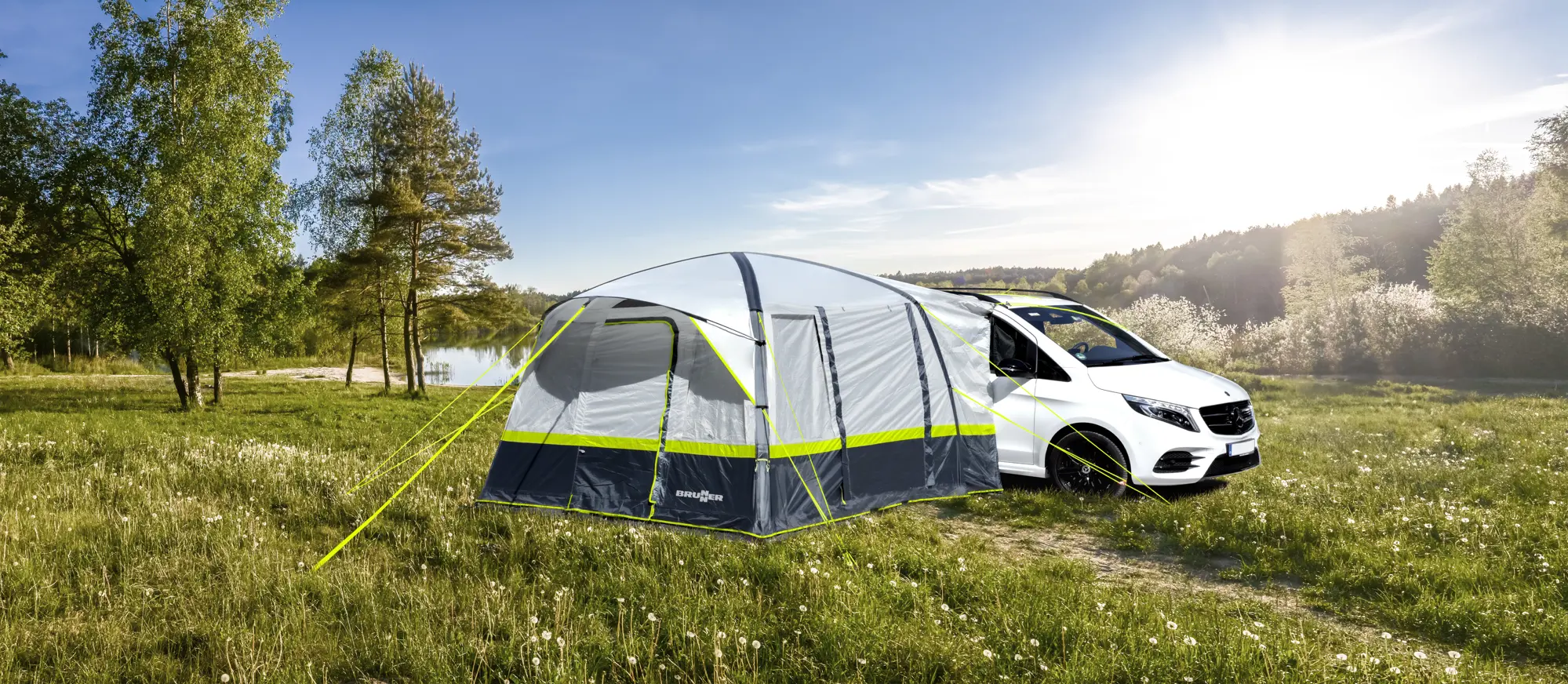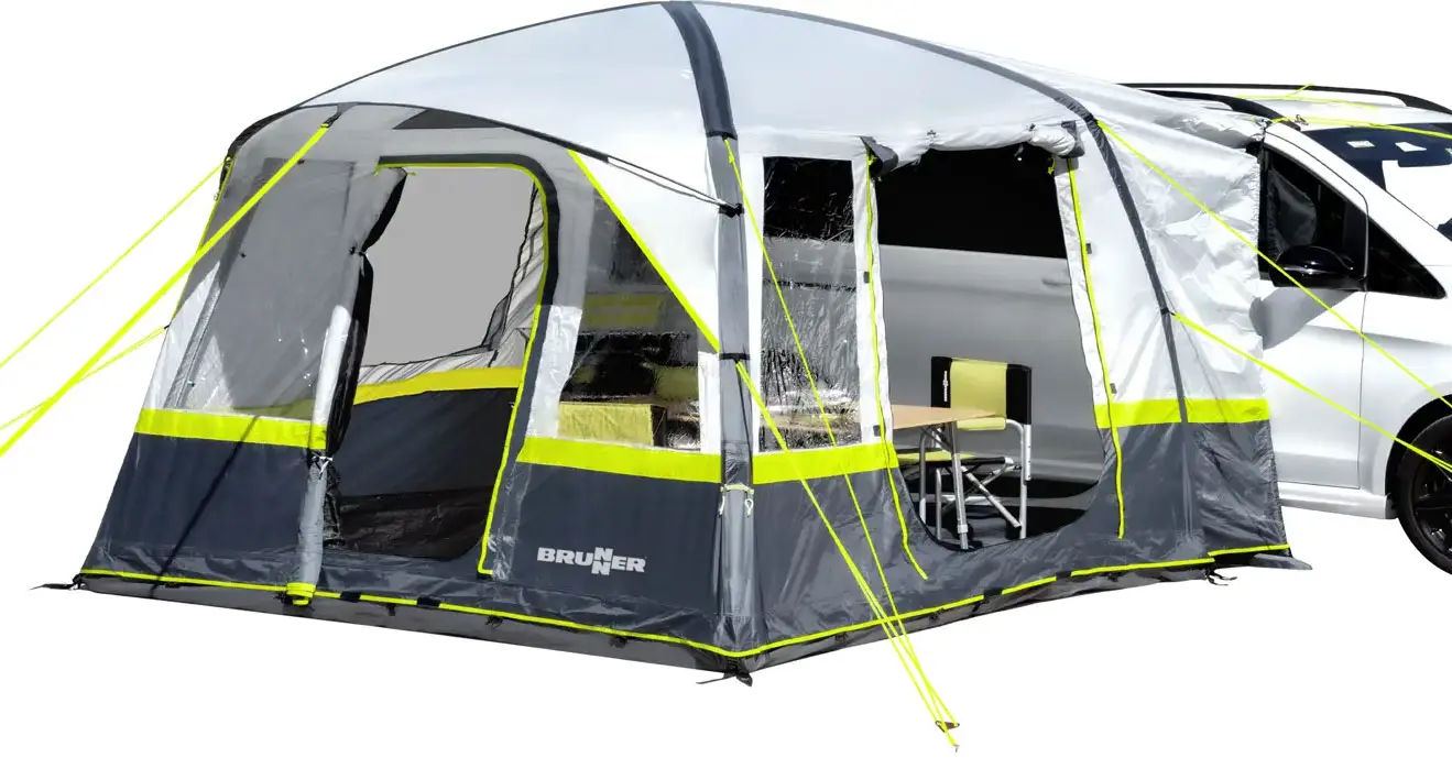 The Brunner Trouper 2.0 Campervan Driveaway Awning offers plenty of extra living space, perfect for enjoyable trips in medium-sized minibuses and vans.