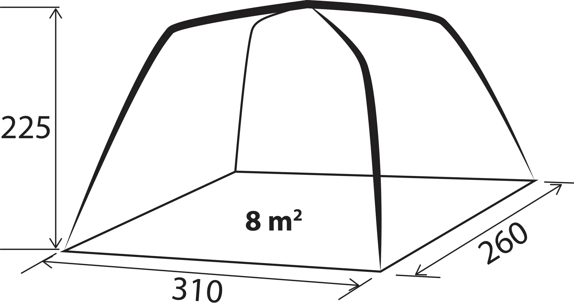 • Dimensions (unpacked) : 310 cm width x 260 cm length x 230 cm height.