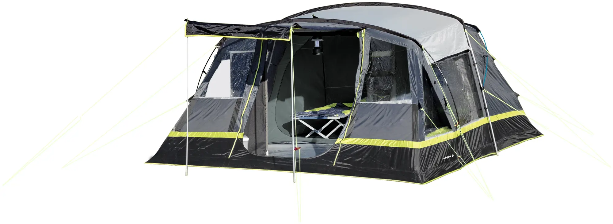 Flysheet with groundsheet, double-action pump, connection pole, guy ropes, pegs, and stuff sack. Ambel Ready for optional LED lights. No extra purchases needed to start using it.