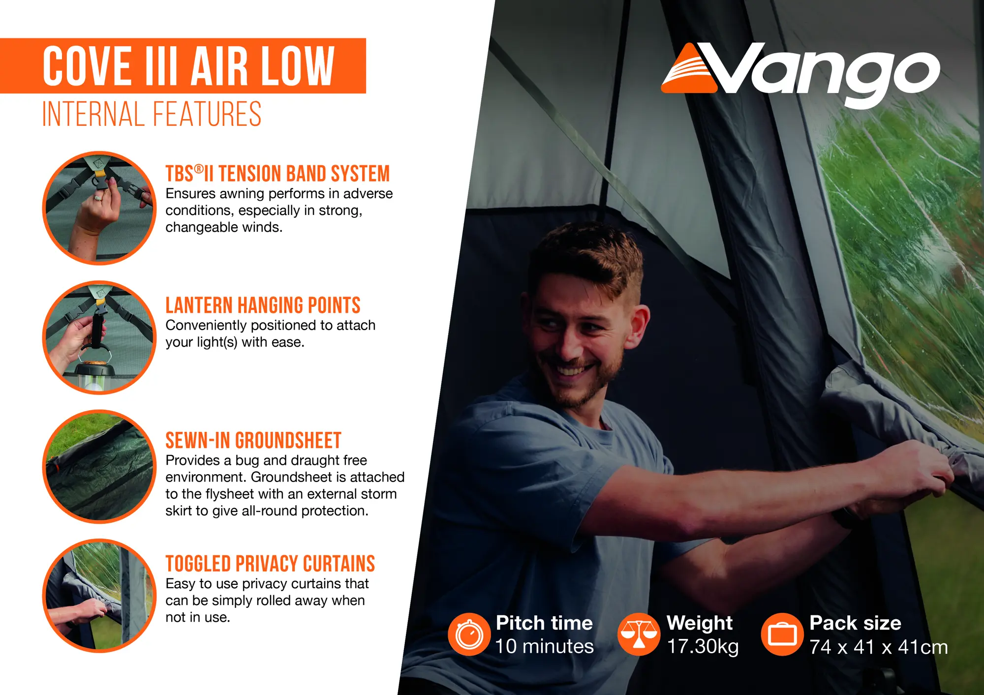 • Specifications Vango Cove III Air Driveaway Awning - Low